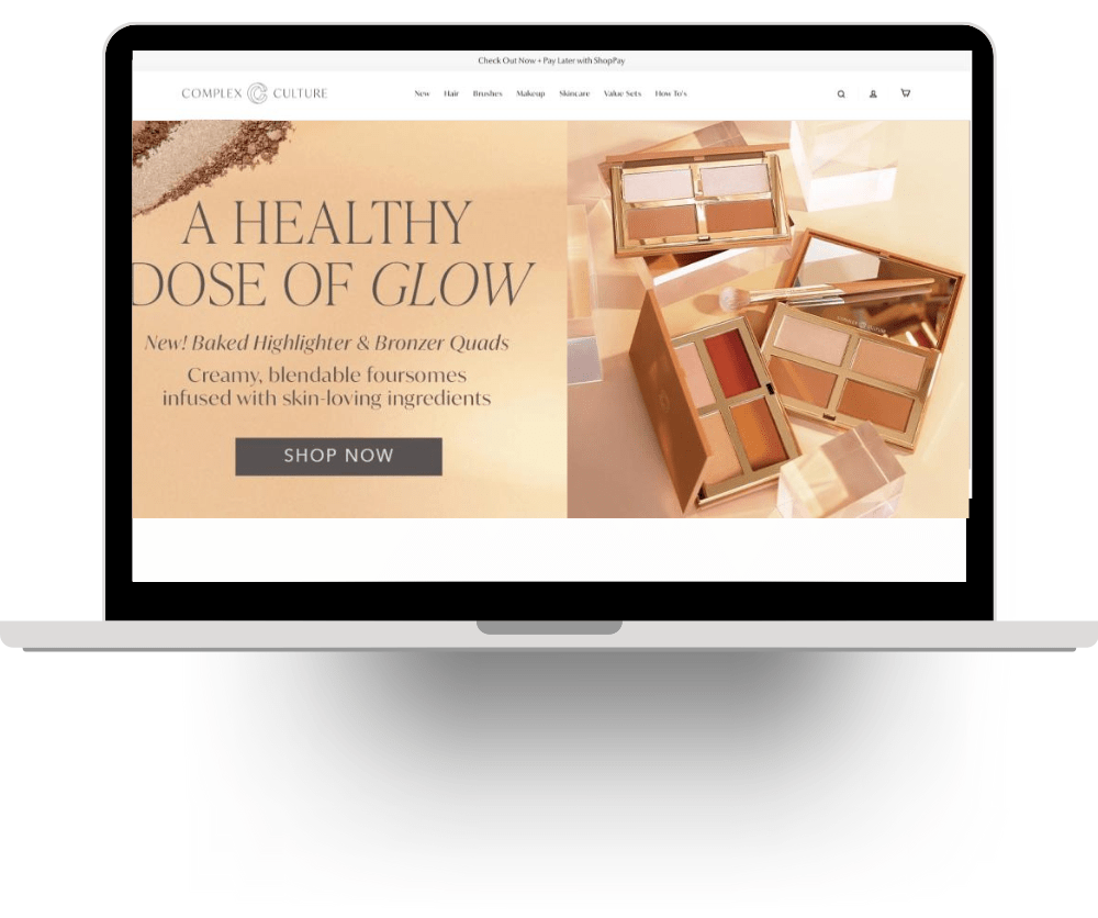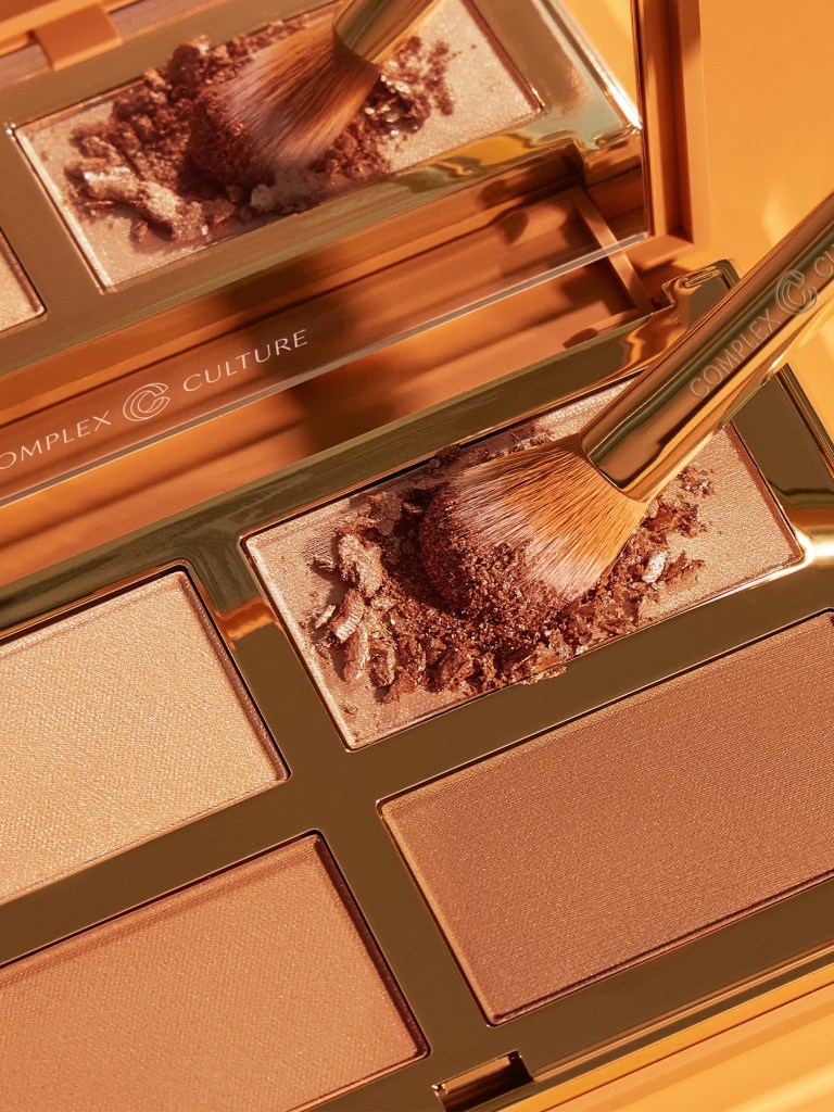 Use the Complex Culture All Over Highlight Brush to dust highlighter on the high points of the face (nose, eyebrows, cheekbones). Use the Press And Set Bronzer Brush to contour and define cheek hollows, jawline — anywhere you want a stroke of sun.